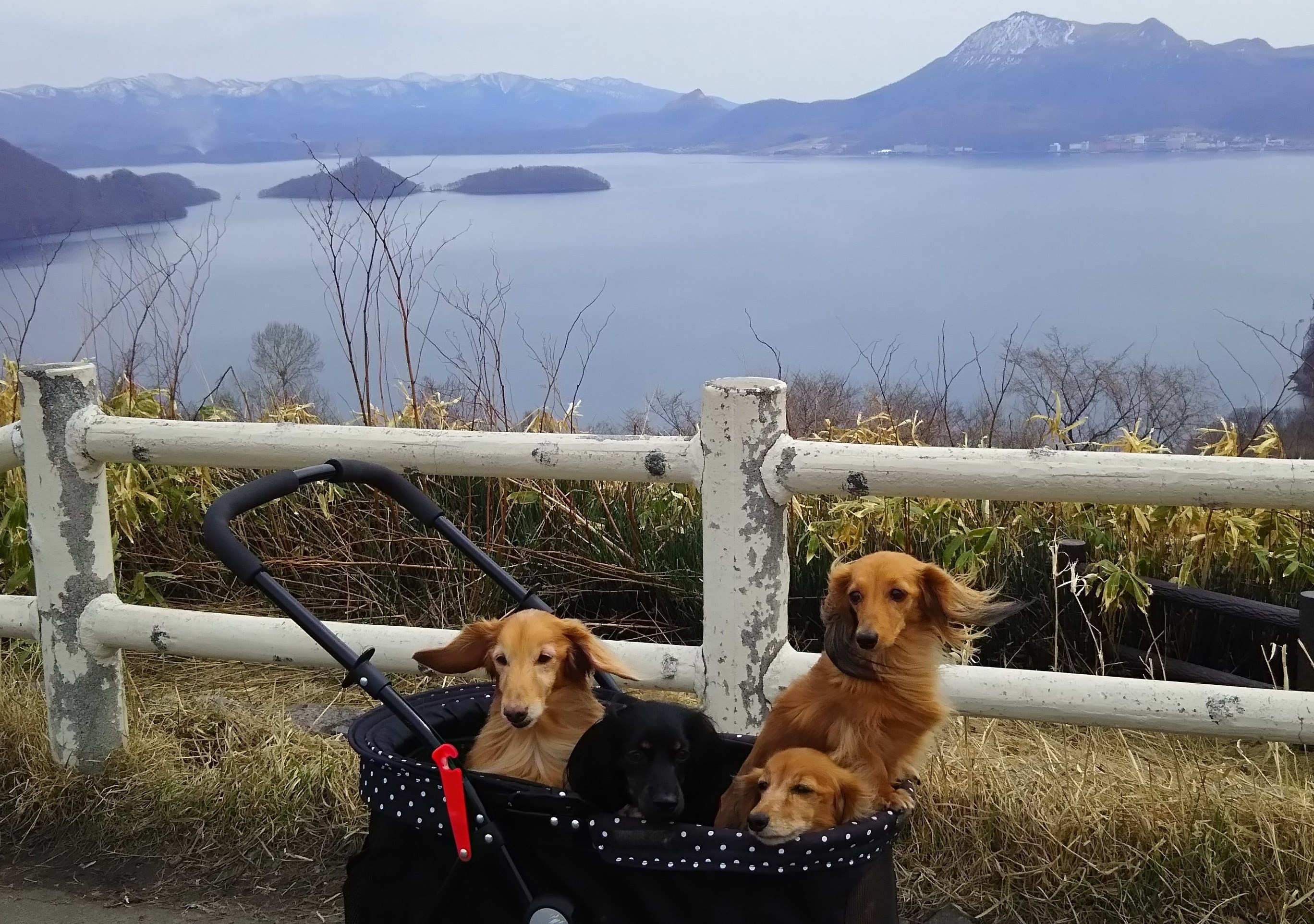 週末の陽気で愛犬達と定山渓から洞爺湖までドライブ。