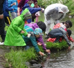 家族連れで2,000匹の稚魚を無事に放流することができました。