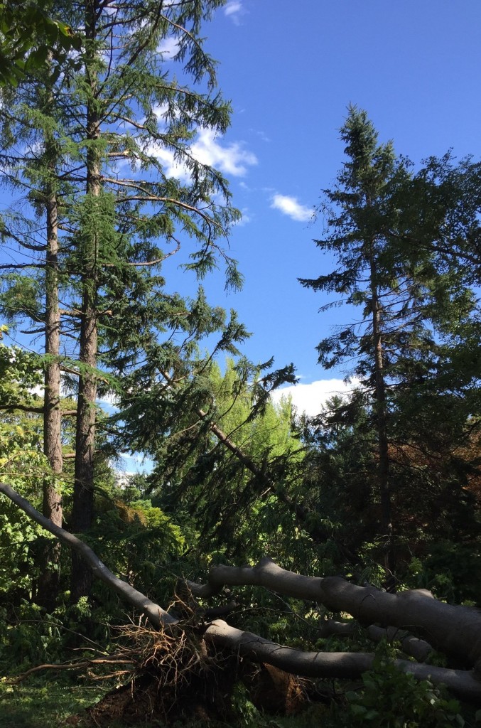 台風により大木も根こそぎだったり幹の途中からポキッリと...